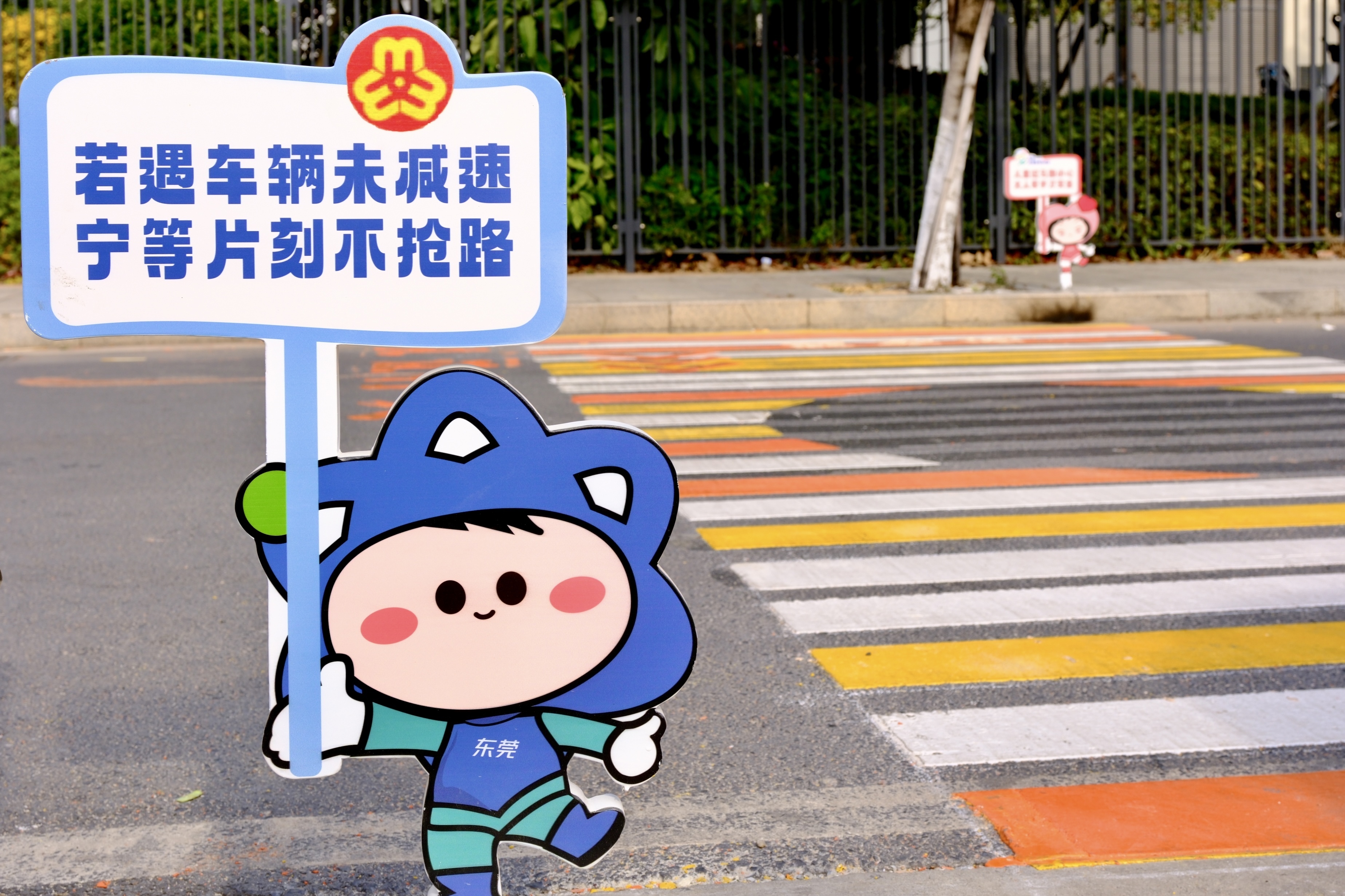 交通出行的“适儿化”改造,守护着童年的安全底线。常平镇首条儿童成长护学路全长超1500米,以彩虹慢行道、卡通斑马线重构交通生态,11条儿童友好斑马线、2345米彩虹慢行道,及避雨亭、长廊等设施,缓解了家长接送孩子的焦虑场景。更具巧思的是“童梦启航巴士站”,原有公交站点被改造为“移动学习窗口”,主题车厢充满童趣,让上学路成为沉浸式体验课堂。