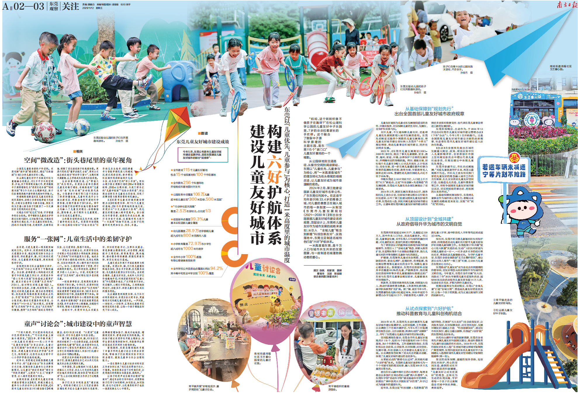 把规划蓝图变为美好现实,东莞以“全域儿童”打造“全域文明”,营造起儿童友好的全民共识,让每一个孩子的笑脸,成为丈量这座城市文明的最新标尺。